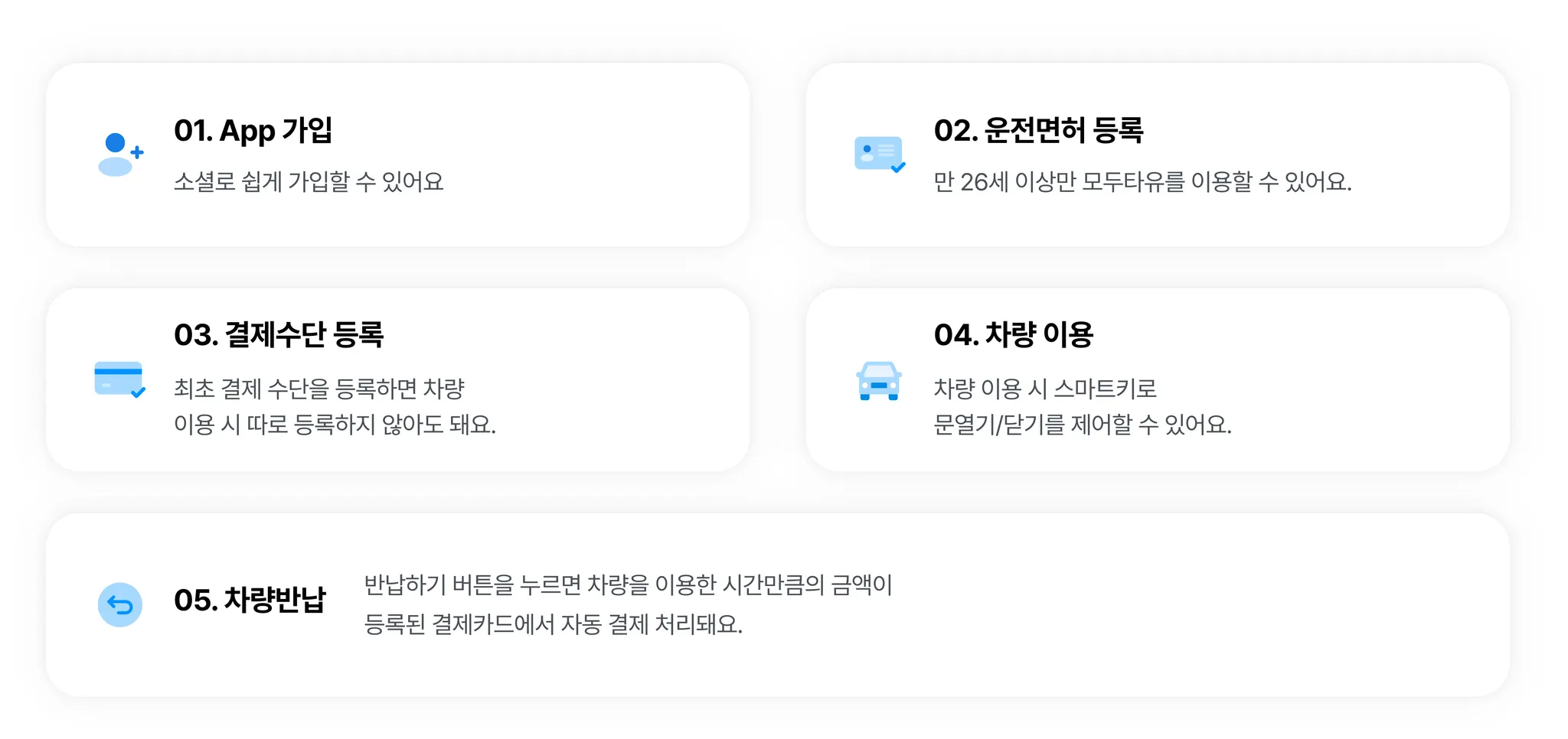 쉽고 빠르게 모두타유 차량을 이용하실 수 있어요.